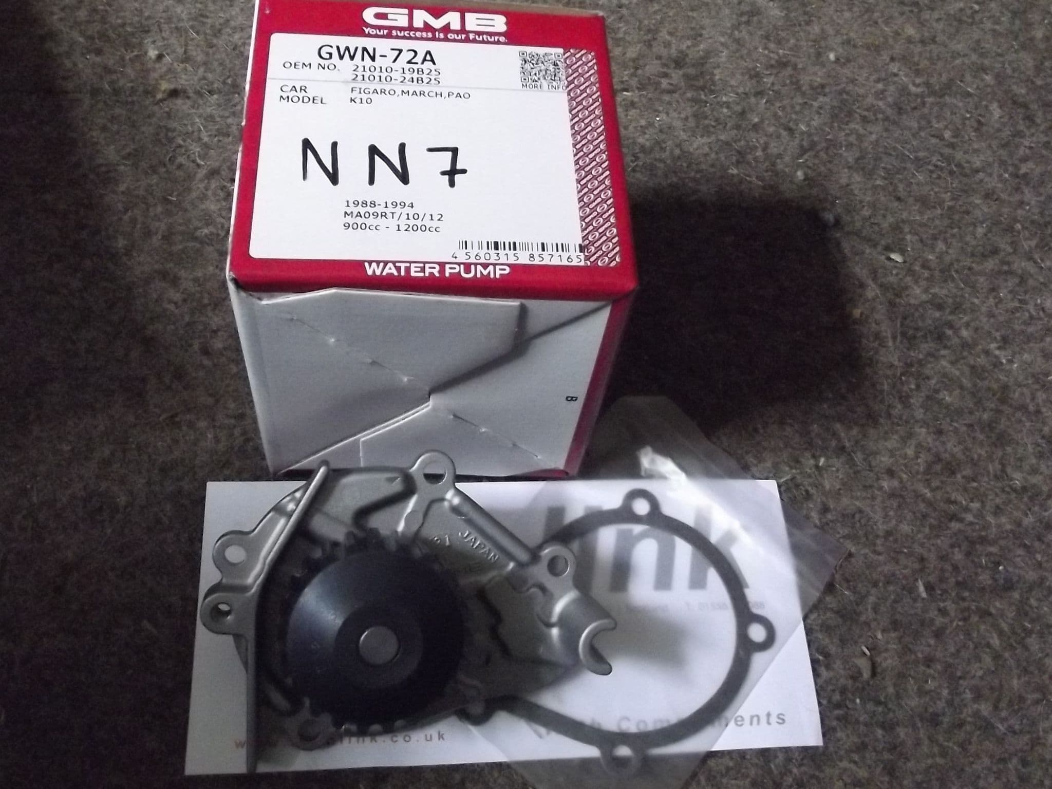 New water pump, Nissan Figaro, Pao & Micra K10. NN00007.